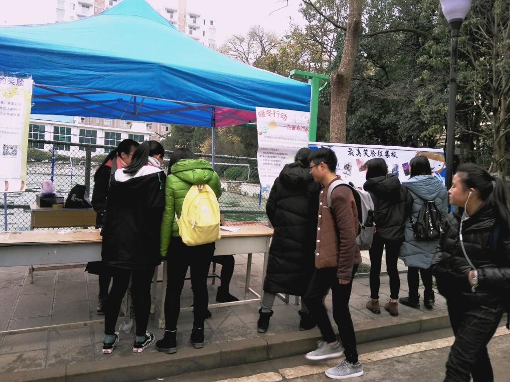 12月11起,由安顺学院大学生心理健康协会举办的12·5活动之“暖冬活动-把爱寄回家”活动如期在学校主干道举行。